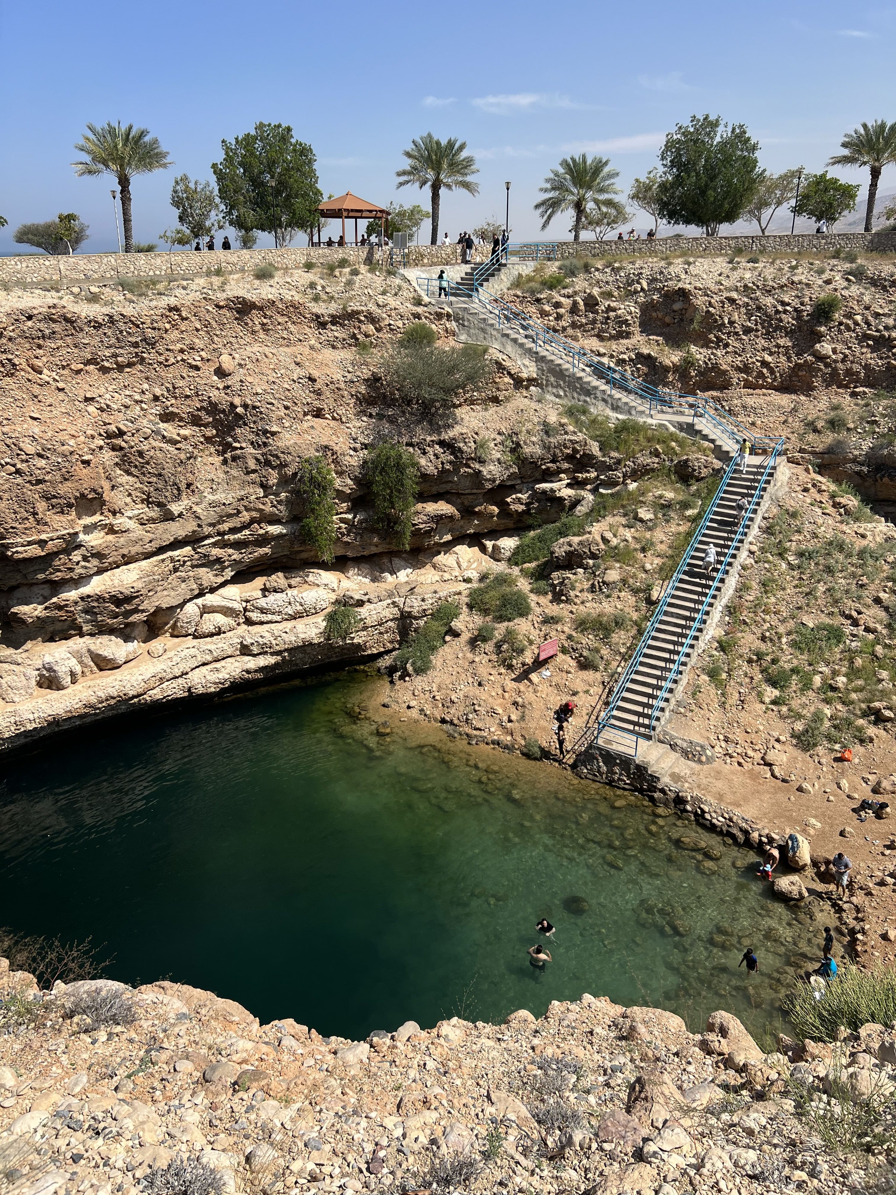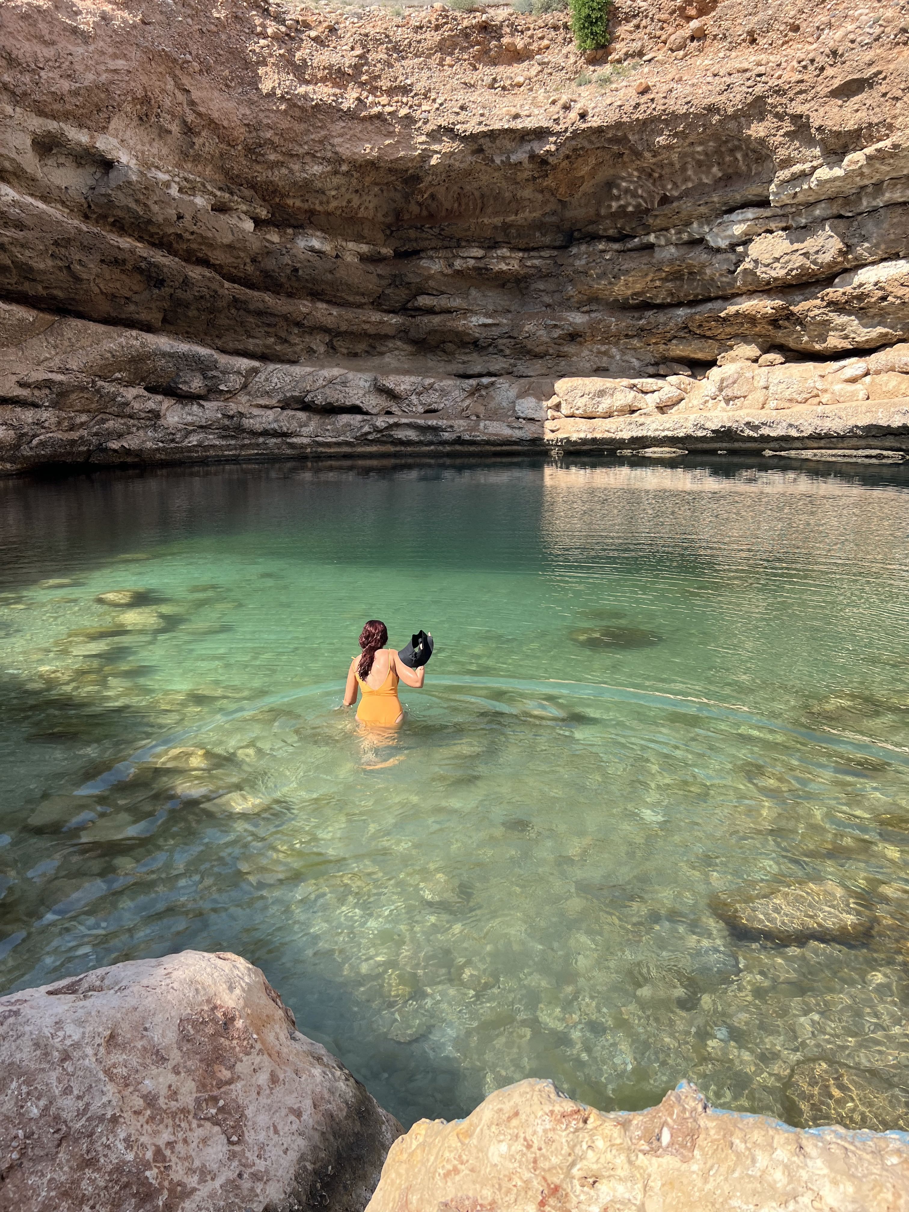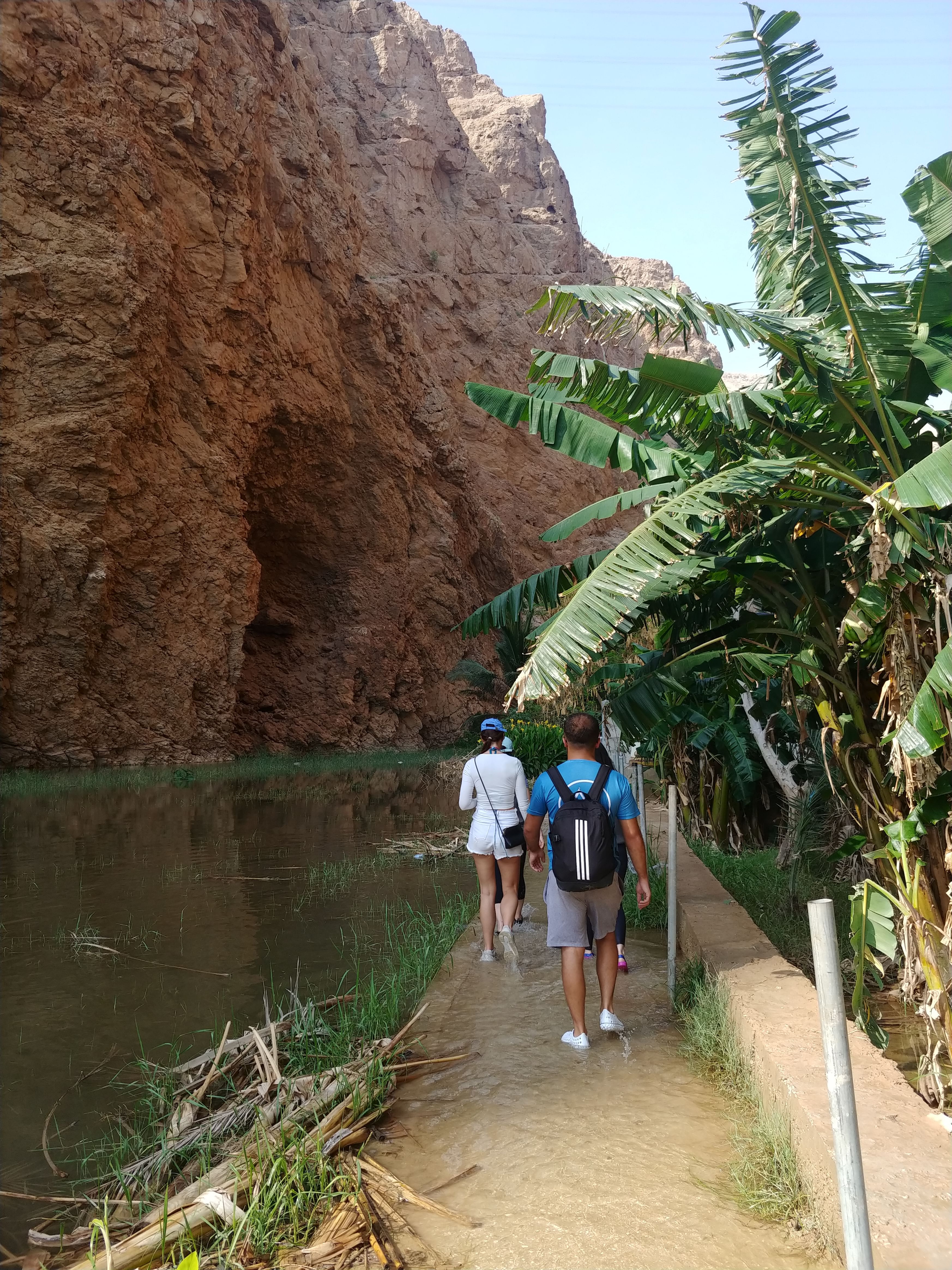 b. Wadi Shab was home to a red bull cliff diving World Series, marking the first time Red Bull ever held a competition in the Middle East. Unlike many wadis that dry up in the summer, Wadi Shab typically maintains a year-round flow, ensuring its beauty in every season. It features a cave, a waterfall, an oasis with plenty of date palms on the way, and river bodies.
