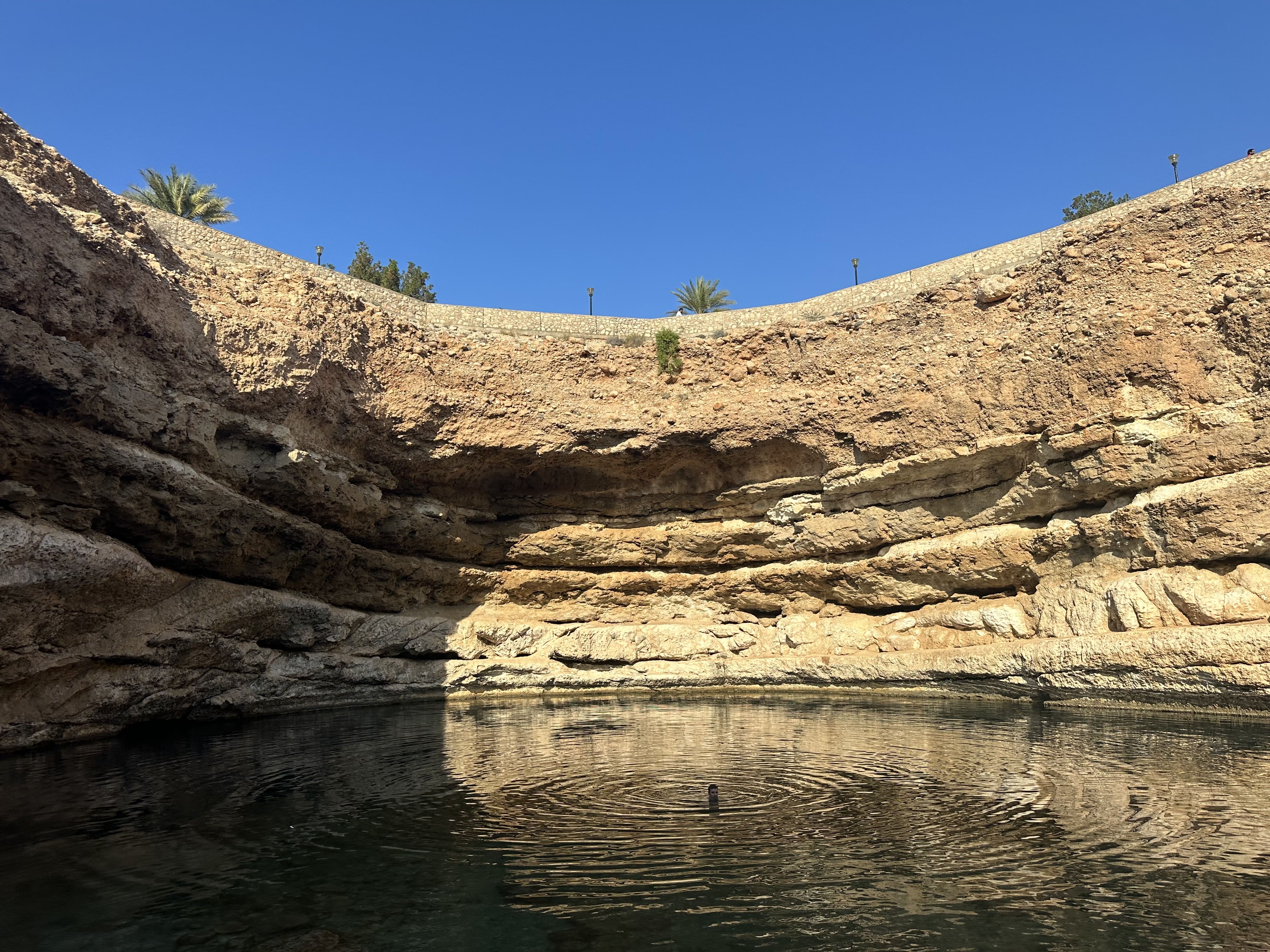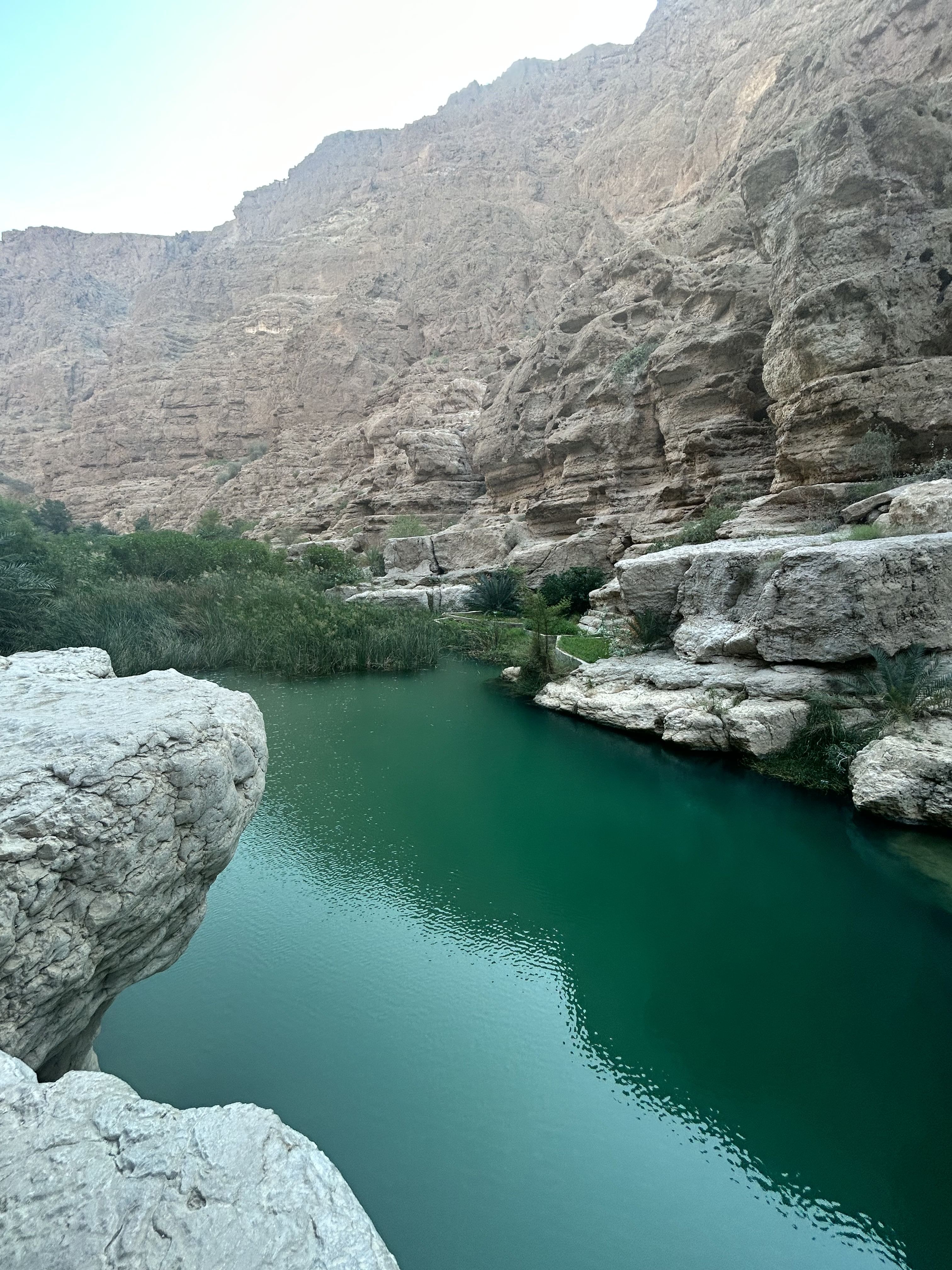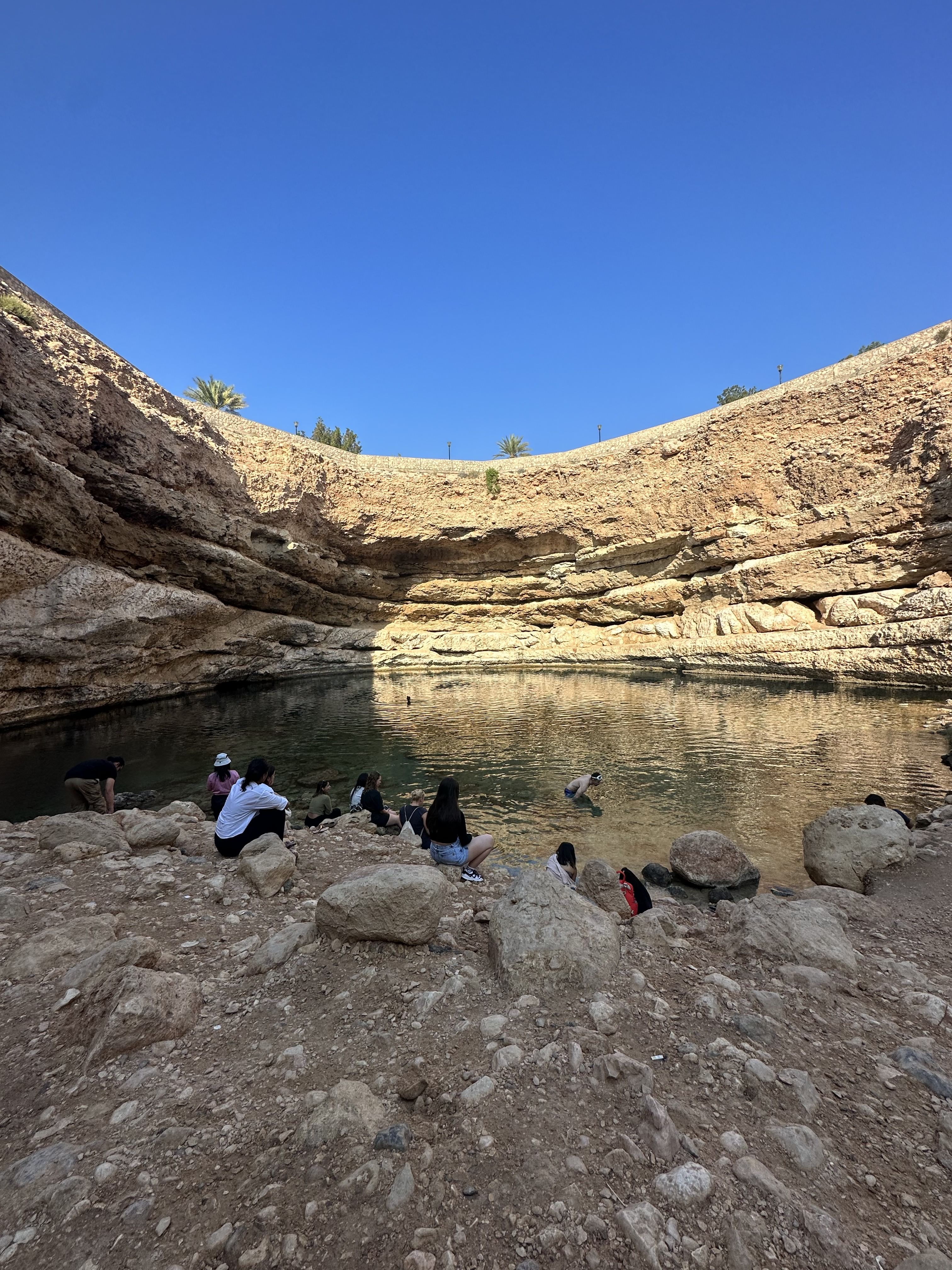 b. Wadi Shab was home to a red bull cliff diving World Series, marking the first time Red Bull ever held a competition in the Middle East. Unlike many wadis that dry up in the summer, Wadi Shab typically maintains a year-round flow, ensuring its beauty in every season. It features a cave, a waterfall, an oasis with plenty of date palms on the way, and river bodies.