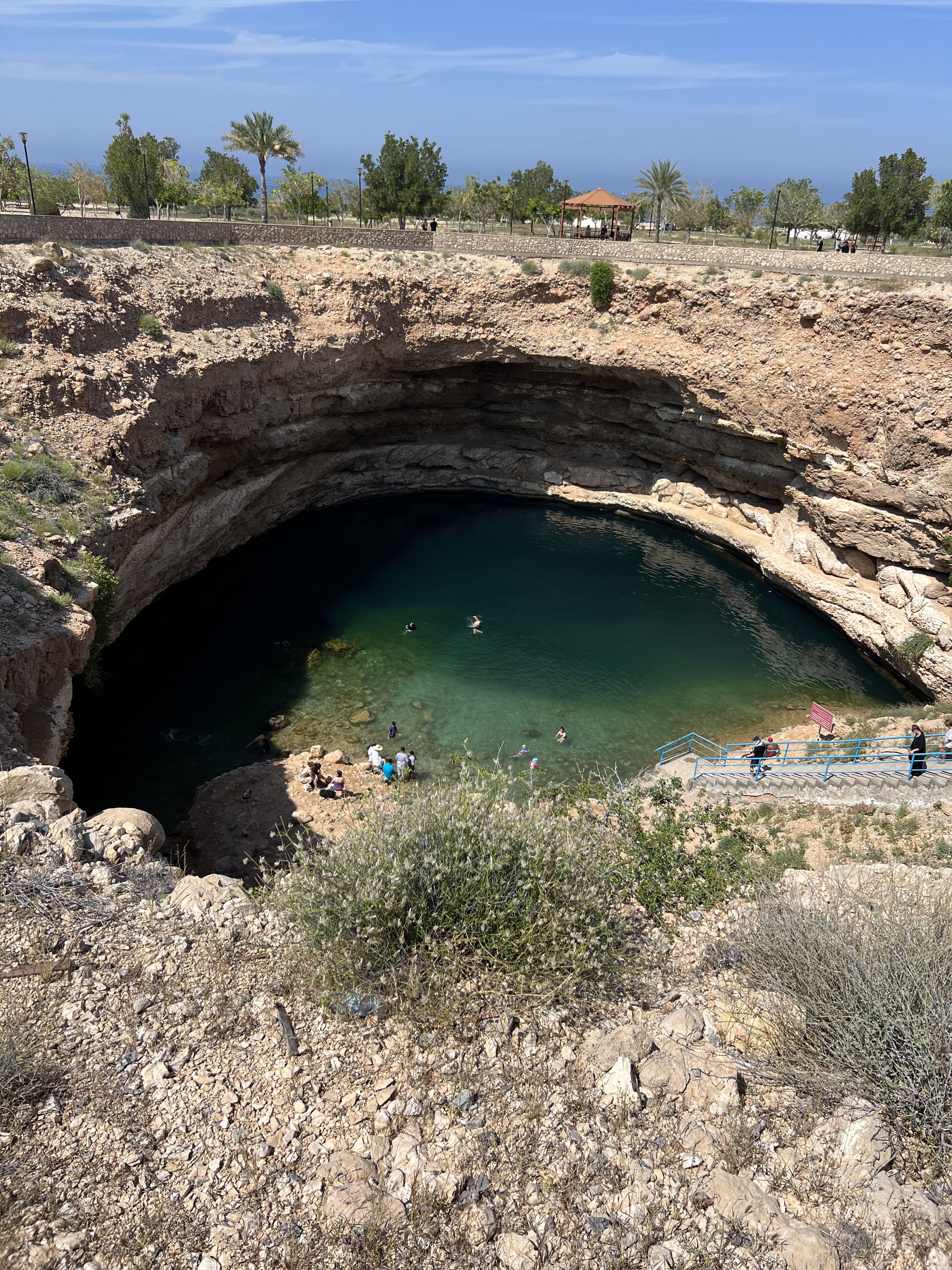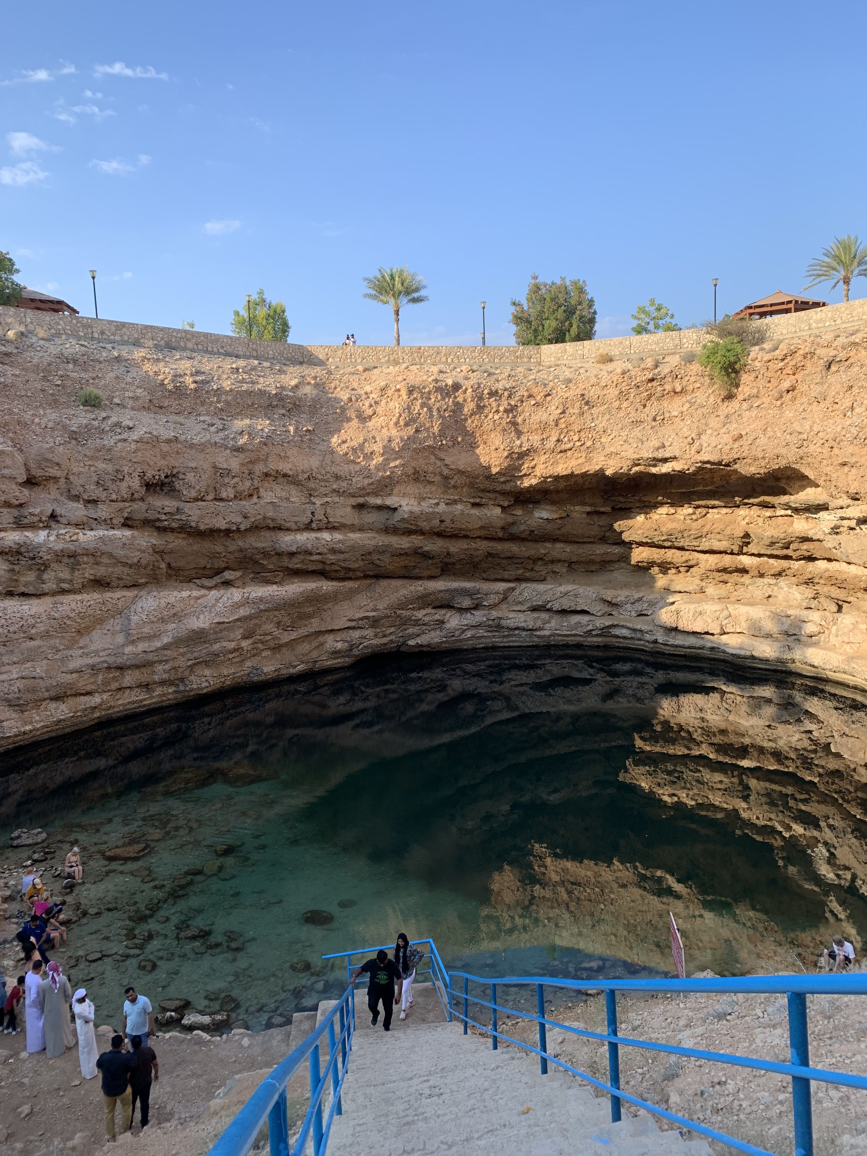 c. Bimmah Sinkhole has healing properties according to locals who believe that its water offers therapeutic benefits, attracting visitors seeking a natural spa experience. The sinkhole's crystal-clear turquoise waters make it a popular spot for swimming and snorkeling, earning it the nickname "Hawaiian of Arabia."