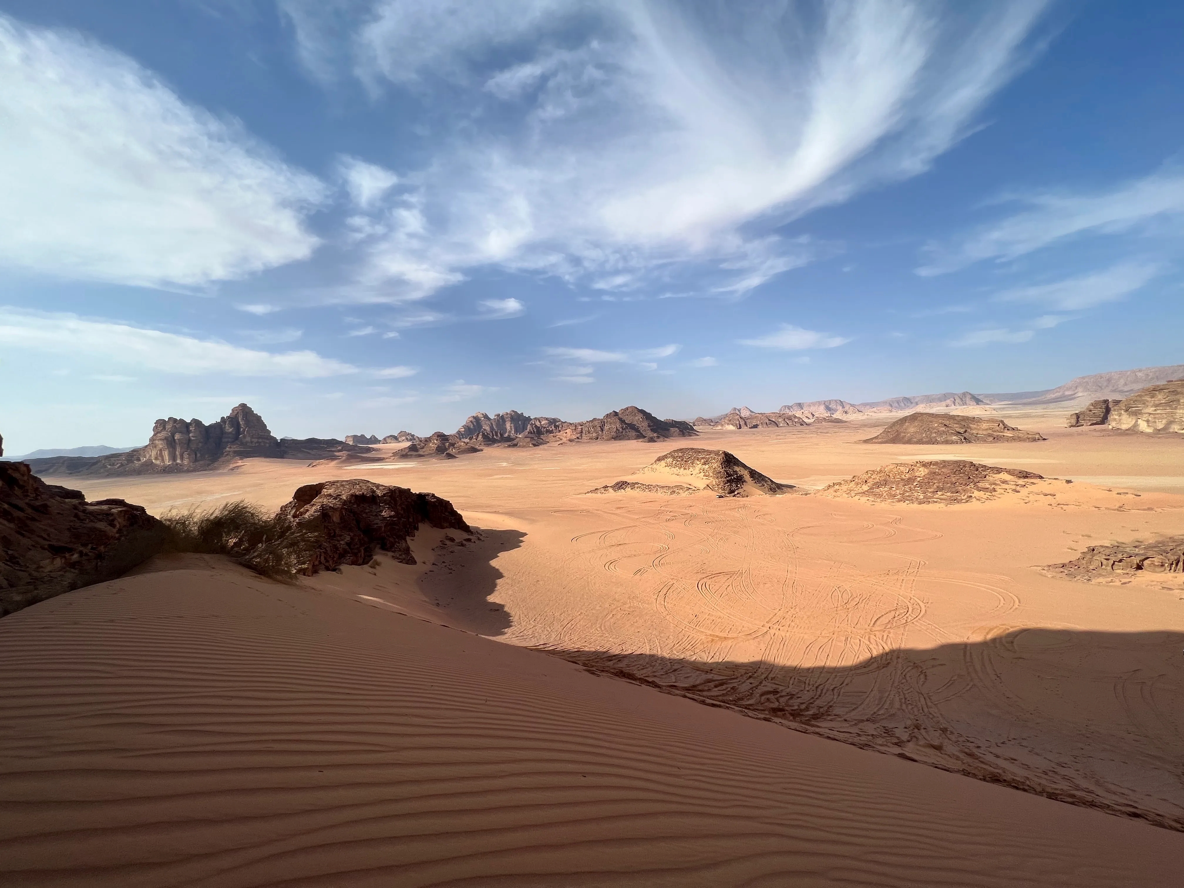 In the morning, we'll embark on a journey to the otherworldly landscape of Little Petra, where we'll explore Siq el-Barid, often referred to as the "Mini Petra," featuring its own modest gorge (Siq) leading to an array of intricately carved tombs and monuments. Following our visit, we'll continue our journey southward for approximately 1.5 hours to the protected expanse of Wadi Rum, renowned as one of the most striking desert landscapes globally. Here, traditional Bedouin communities still thrive, and on a thrilling 4x4 Jeep tour, you'll traverse through canyons, across sand dunes, and encounter ancient Nabatean rock inscriptions. Upon arrival at your camp, check-in and indulge in a delightful dinner amidst the tranquil desert surroundings.