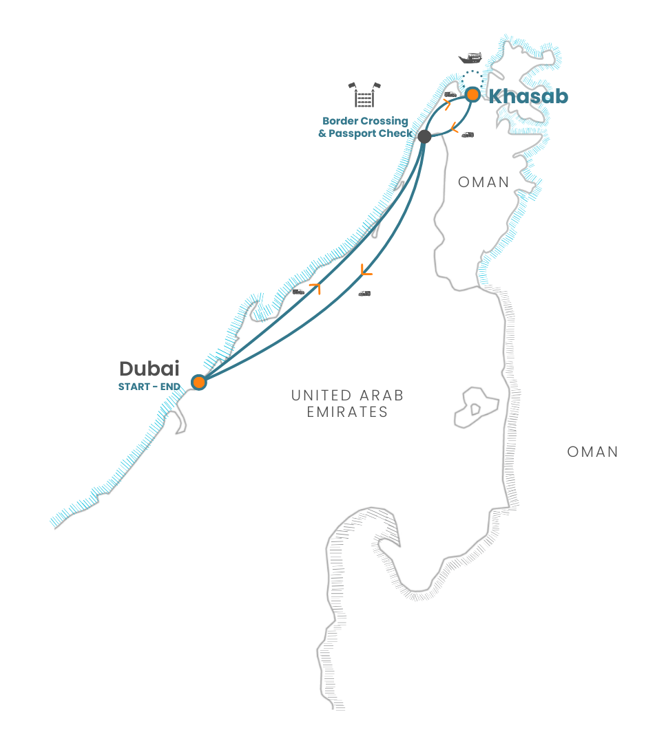 - 03:30 – Arrival in Khasab (self-drive)