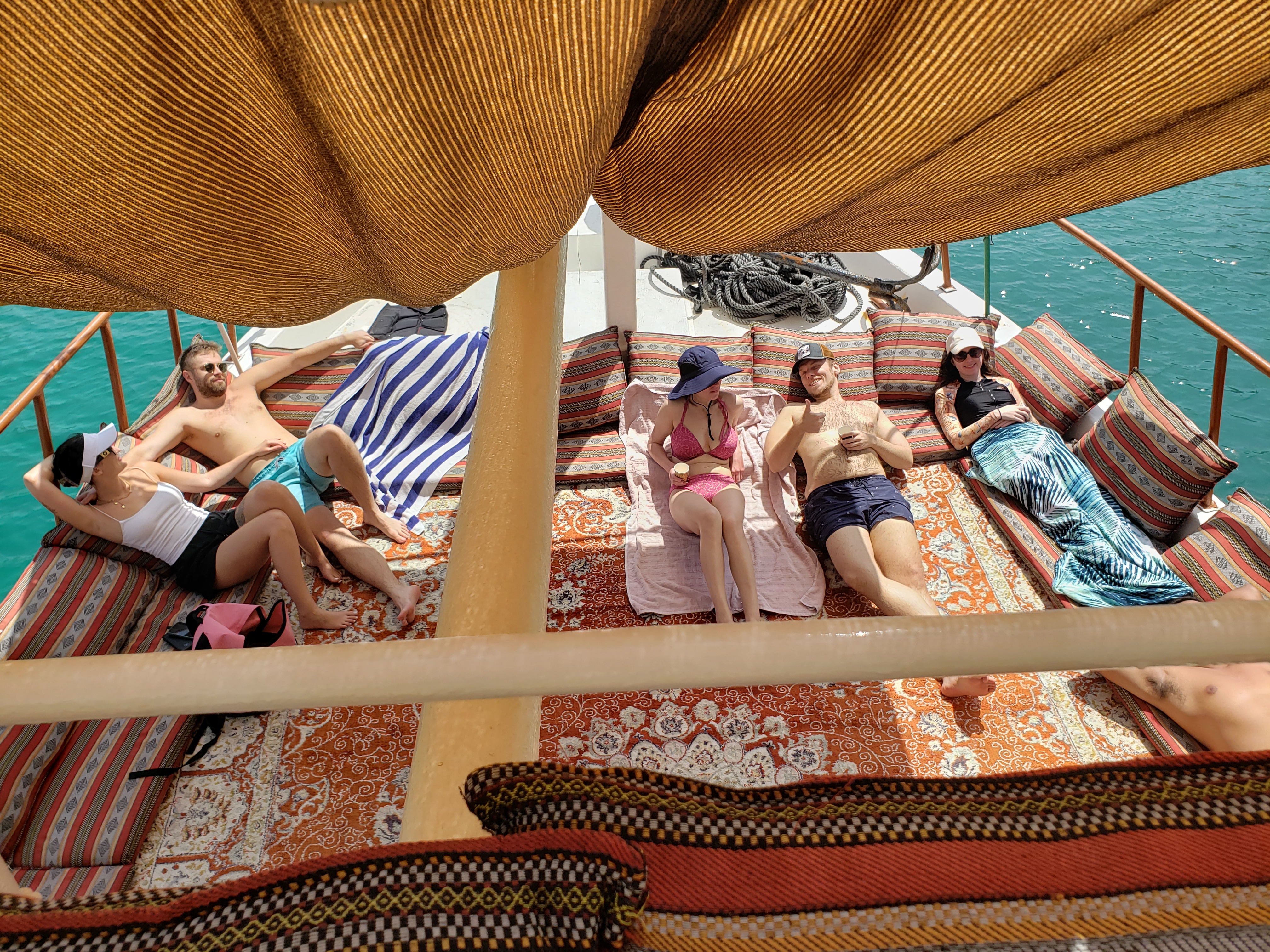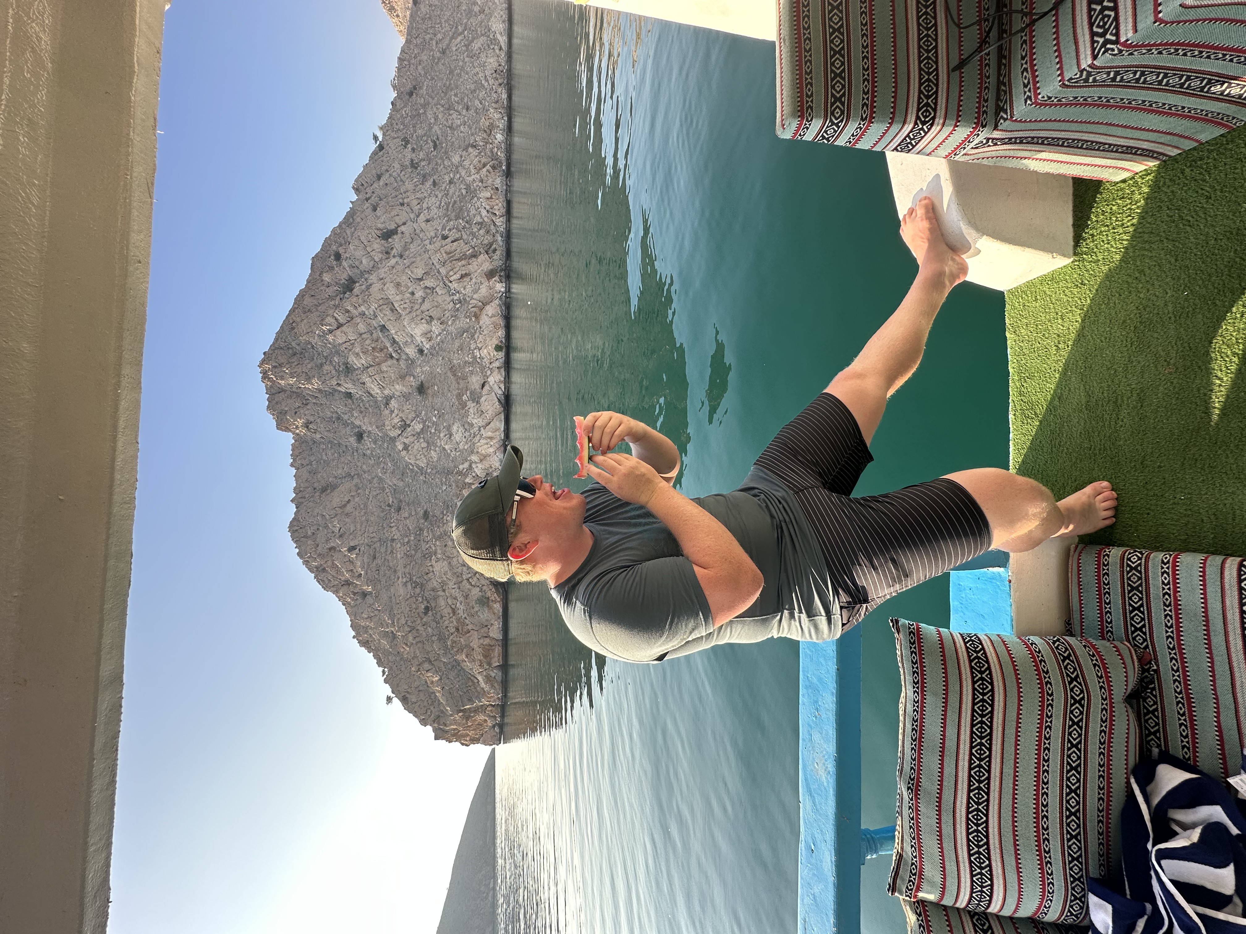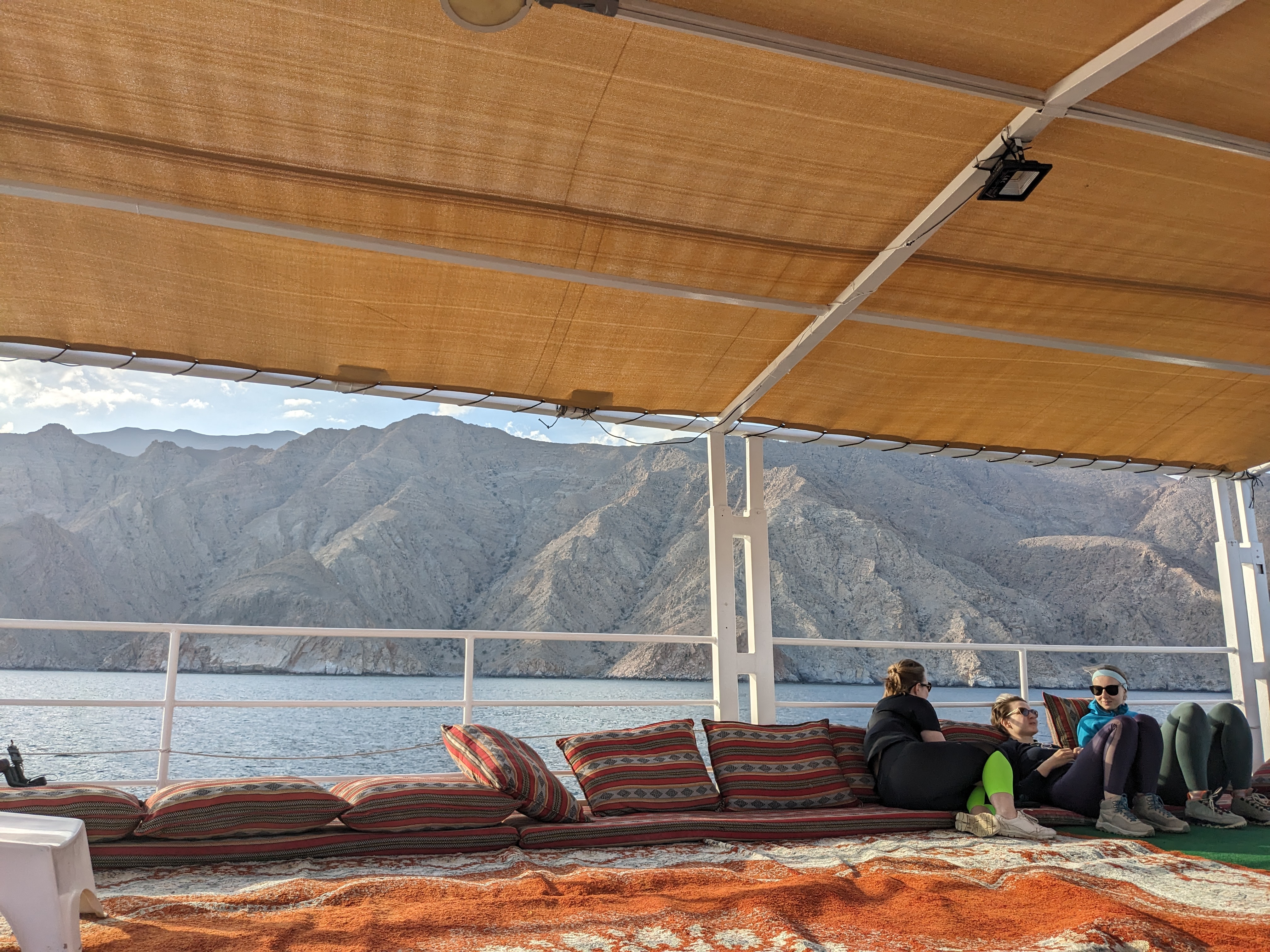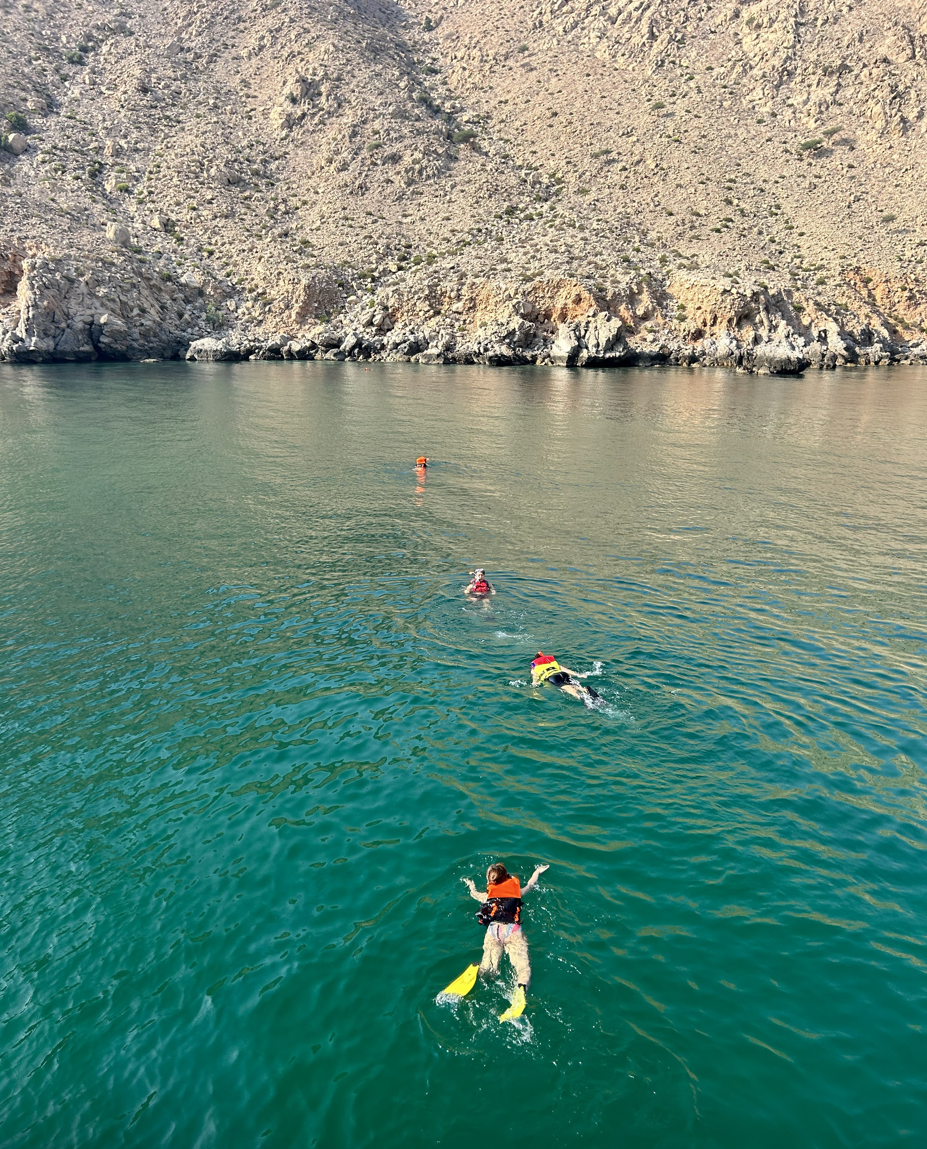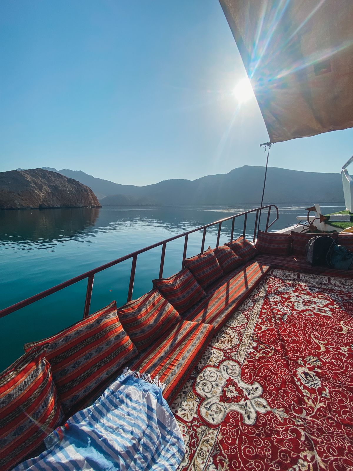 We will snorkel, swim and in the crystal clear water of Musandam that is full with abundant marine life and enjoy the most beautiful views of the Fjords while chilling with nice music on traditional Arabian carpets and cushions.