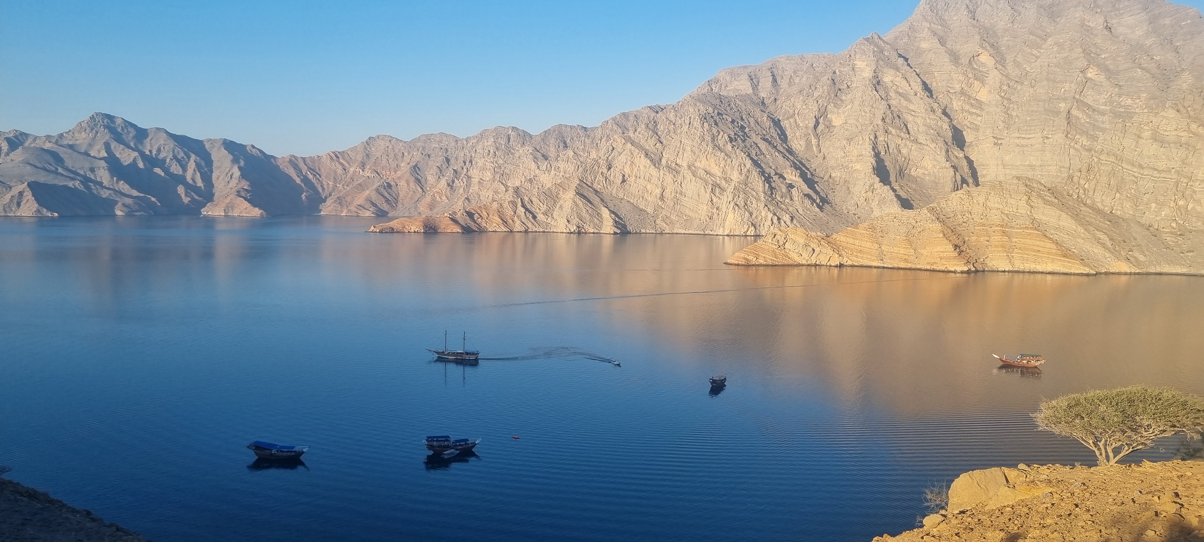 - Board a traditional dhow and have breakfast as we set sail through the breathtaking Musandam Fjords, often compared to the fjords of Norway. Enjoy views of dramatic cliffs, crystal-clear waters, and remote fishing villages such as Nadifi, Qanah, Maqlab, Sham, and Seebi.